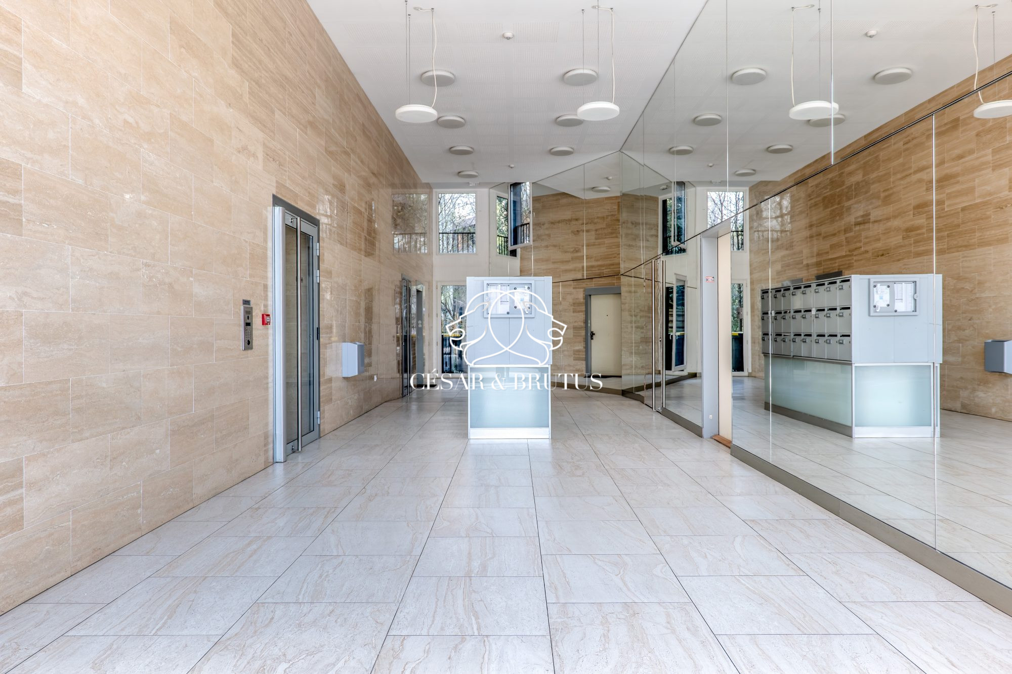 Prestations Premium : Parquet en bois blanc lasuré, domotique, centrale de thermorégulation et excellente isolation phonique.