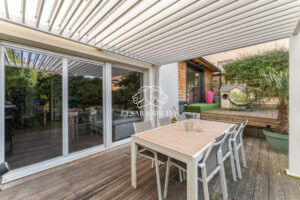 Espace de vie : Une grande pièce de vie lumineuse avec cuisine équipée, s'ouvrant directement sur la terrasse pour vos déjeuners au soleil, Extérieur avec vis à vis modéré -