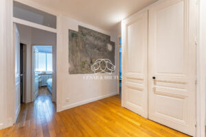 Ce bien est en excellent état et a conservé tout le cachet de l’ancien avec son parquet en bois massif d’origine et son esprit art déco, harmonieusement associé à des prestations modernes.