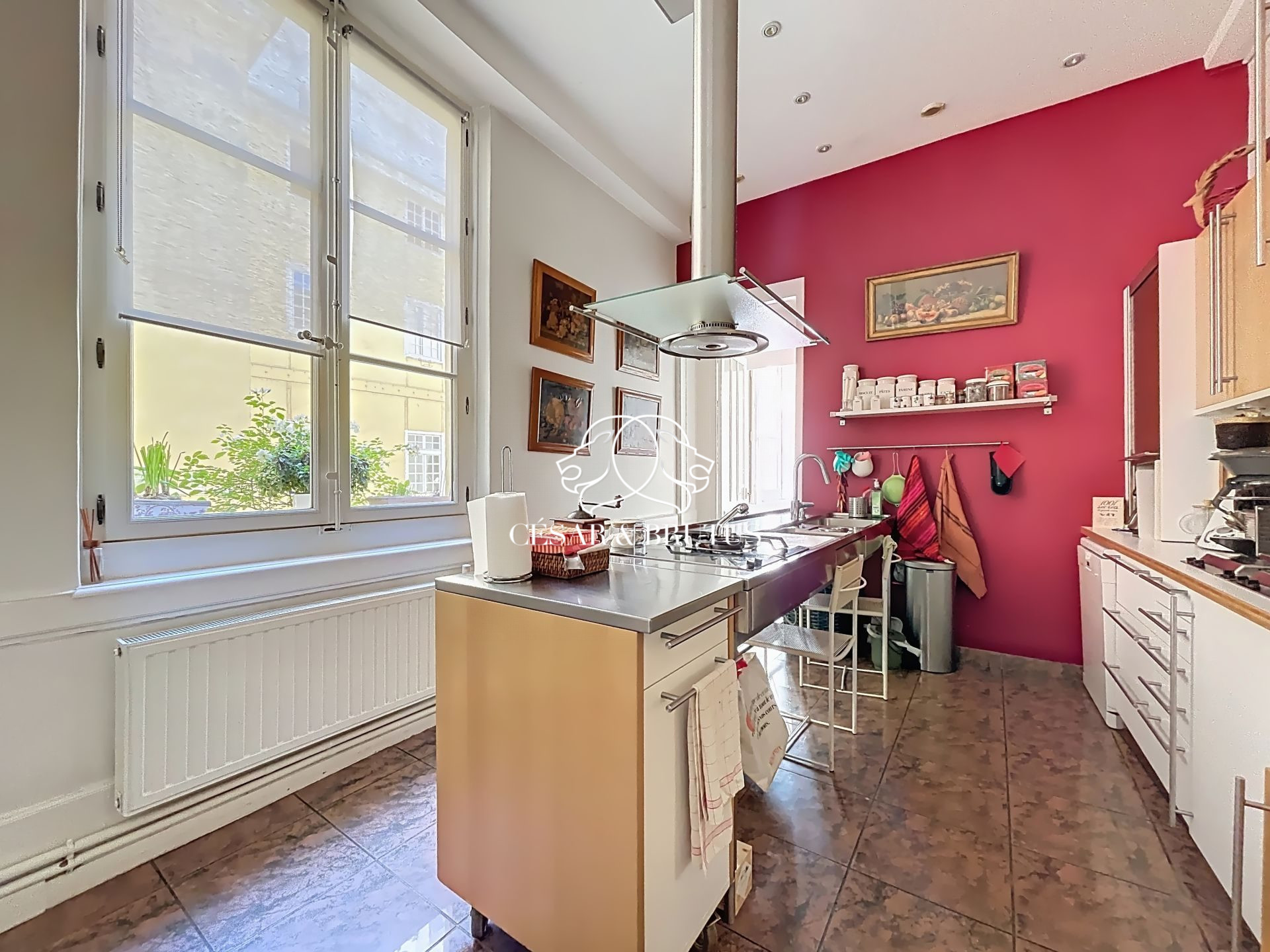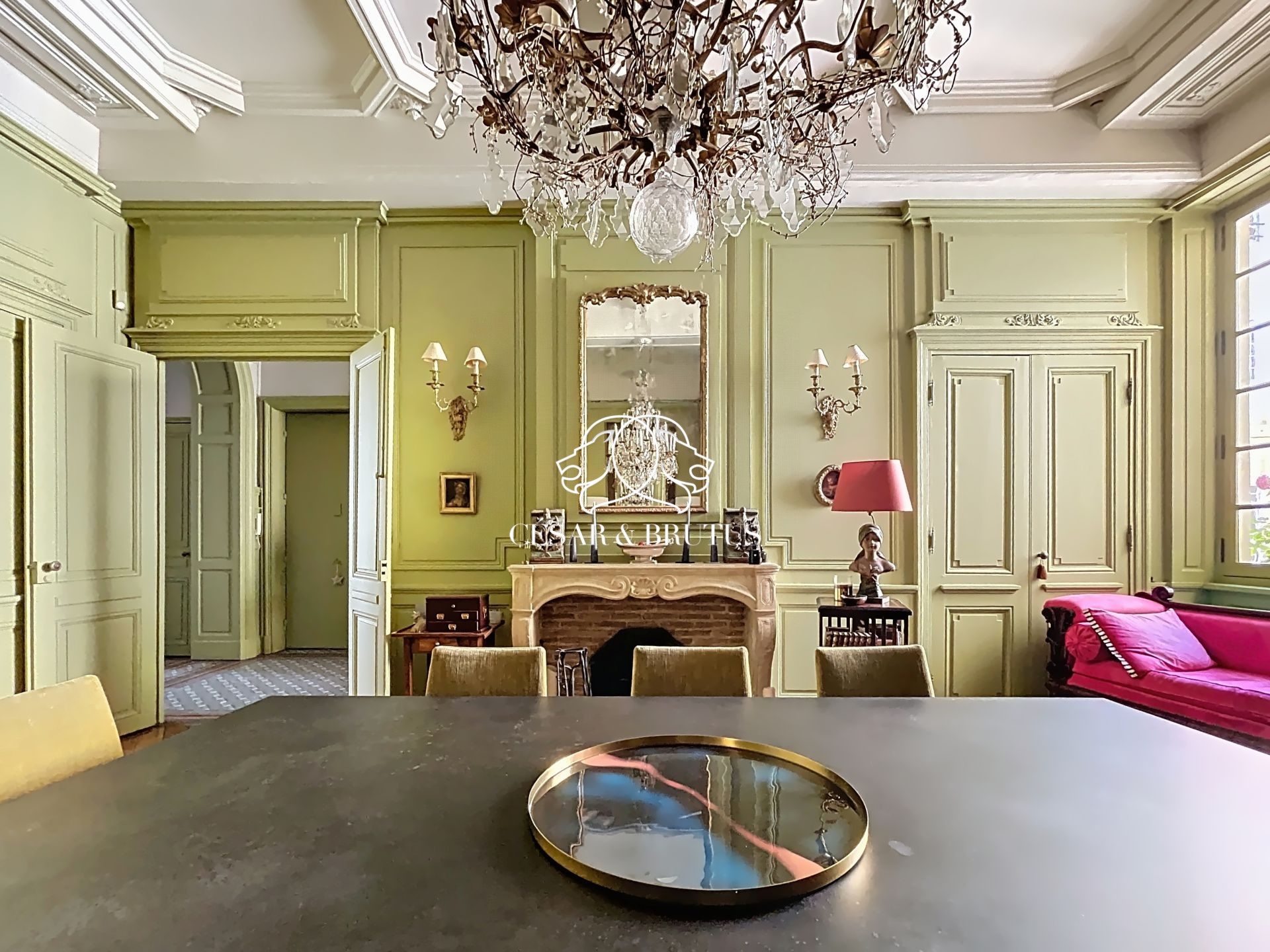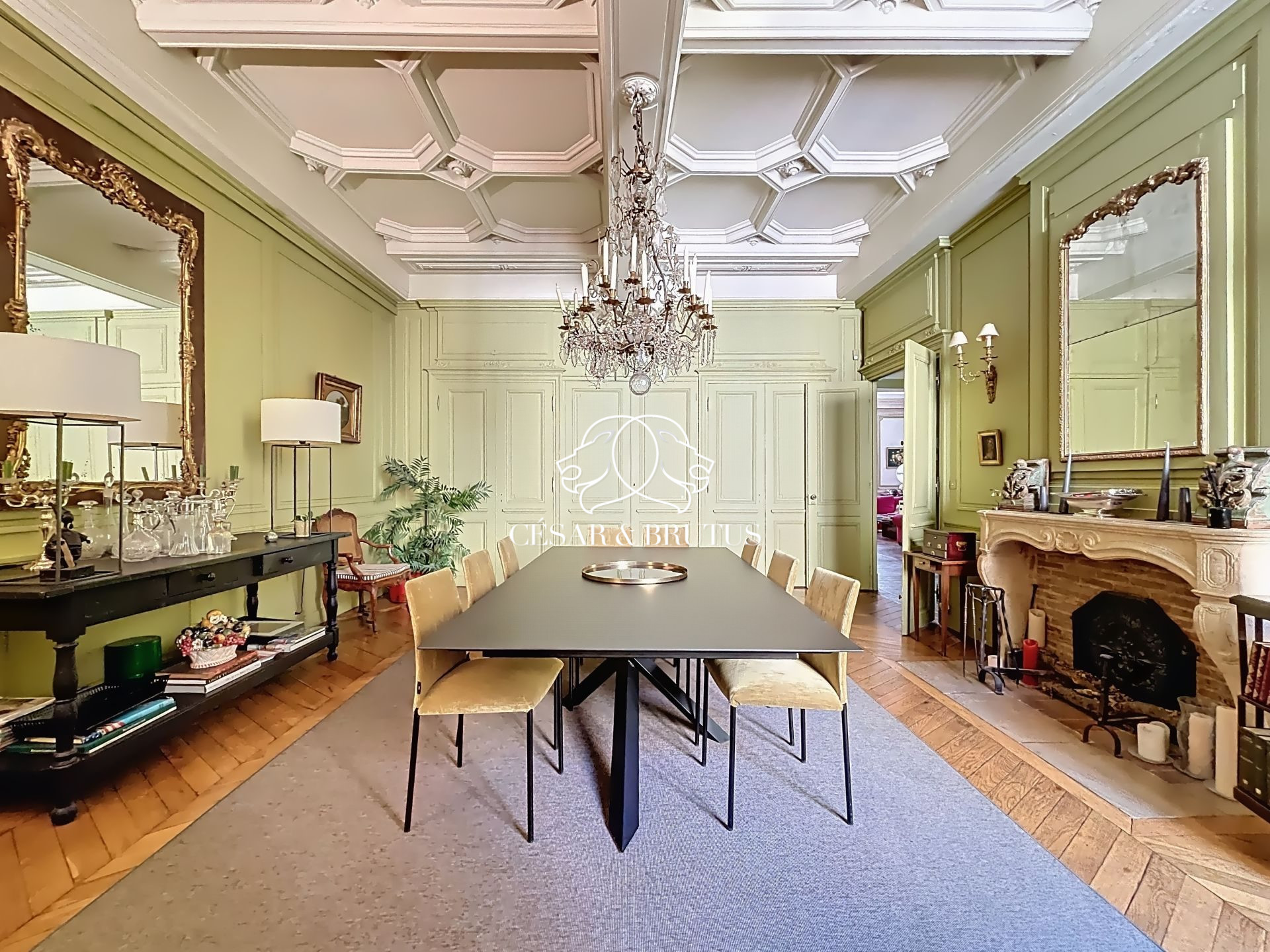 Sur la place Bellecour et dans un immeuble du 18e siècle orienté plein sud, César & Brutus vous présente cet appartement traversant de 250 m2 (235 Carrez) aux volumes généreux. Situé au 2e étage sur 3 avec ascenseur et sécurisé par une alarme, vous y trouverez le calme en plein coeurs de la presqu'île. Il se compose d'une entrée et de son vestiaire, une salle de réception avec cheminée de 38 m2, un salon séjour avec cheminée de 42 m2, un bureau indépendant, une suite parentale de 40 m2 avec sa salle de bain, une cuisine équipée et aménagée indépendante (ouverture possible) de 16m2, un cellier, une buanderie, une 2ème chambre de 19 m2, une 3ème de 16m2, une salle de bain, une salle d'eau, et une 4ème chambre en mezzanine (14 m2). Un balcon (côté cour) et 2 caves complètent ce bien. (Local vélo dans la cour) DÉTAILS: Parquets en Dalles Arenberg et points de Hongrie, hautes fenêtres en bois double vitrage, moulures , boiseries et très belle hauteur sous plafond. EQUIPEMENT: Alarme, volets bois intérieur et volets roulants électriques, vestiaire, bibliothèque murale toute hauteur, 3 cheminées et de nombreux placards. Prix de vente du bien : 1 350 000€ honoraires d’agence inclus à la charge du vendeur DPE D – GES D TF : 1 877 € Appartement soumis au régime de la copropriété. Pas de procédure en cours Nb de lots : 10, dont 8 à usage d’habitation Les informations sur les risques auxquels ce bien est exposé sont disponibles sur le site Géorisques : www.georisques.gouv.fr Contactez christophe@cesaretbrutus.com – 06 13 30 50 26 Agent commercial indépendant – RSAC n° 482 914 215