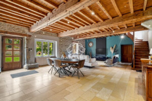 Au fond d’une impasse, à quelques minutes à pied du centre d’Eyzin-Pinet, découvrez une bâtisse historique pleine de charme, anciennement annexe du château du village. Ici, la pierre, les poutres apparentes et les volumes généreux racontent une histoire, prête à accueillir la vôtre.