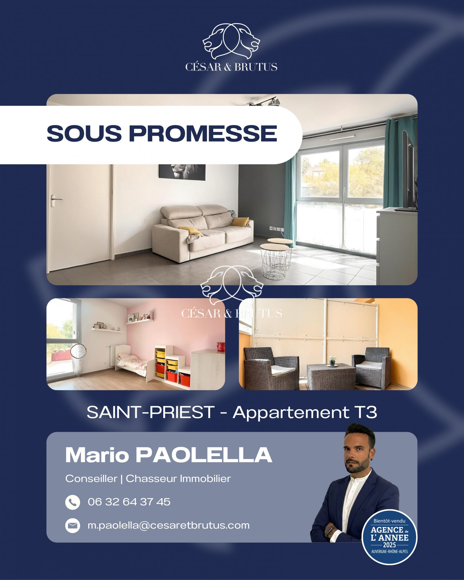 Exclusivité – ST PRIEST (La Fouillouse) – Appartement T3 (63 m2) – Parking