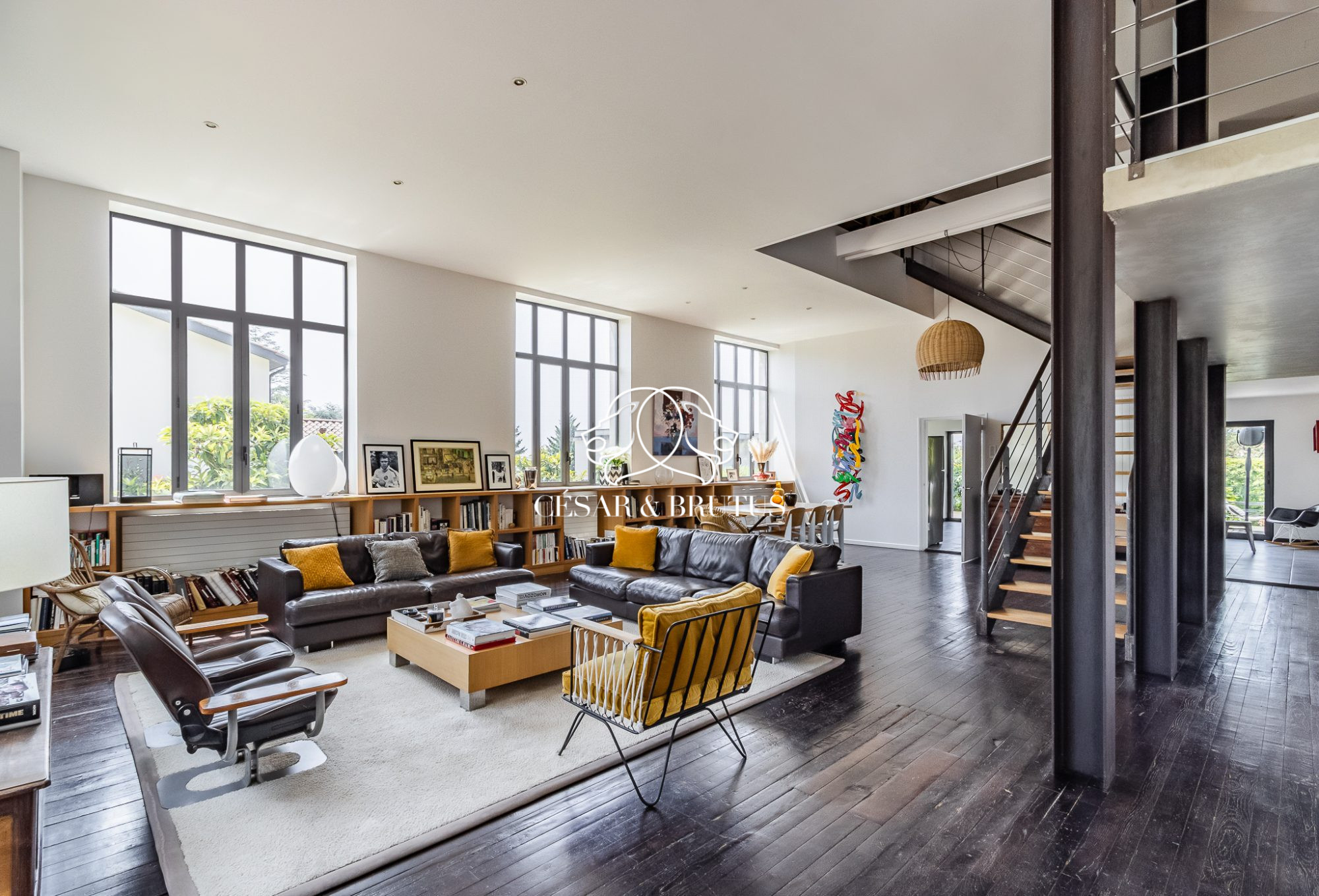 CESAR ET BRUTUS – MAISON ATYPIQUE ET SPACIEUSE – LIMONEST Ancienne menuiserie réhabilitée avec charme – 271,65 m² habitables – 6 chambres – Terrain 2 000 m² – Vue sur les Monts du Lyonnais À seulement quelques minutes de Lyon, découvrez cette propriété rare à LIMONEST (69760) : une ancienne menuiserie transformée avec goût en une maison de caractère à l’architecture unique. 271,65 m² d’espace de vie répartis en 7 pièces, dont un grand séjour au cachet indéniable, une grande cuisine dinatoire indépendante aménagée et équipée, six chambres dont une suite parentale, deux salles de bains (possibilité 3è), et des volumes impressionnants baignant de lumière naturelle.