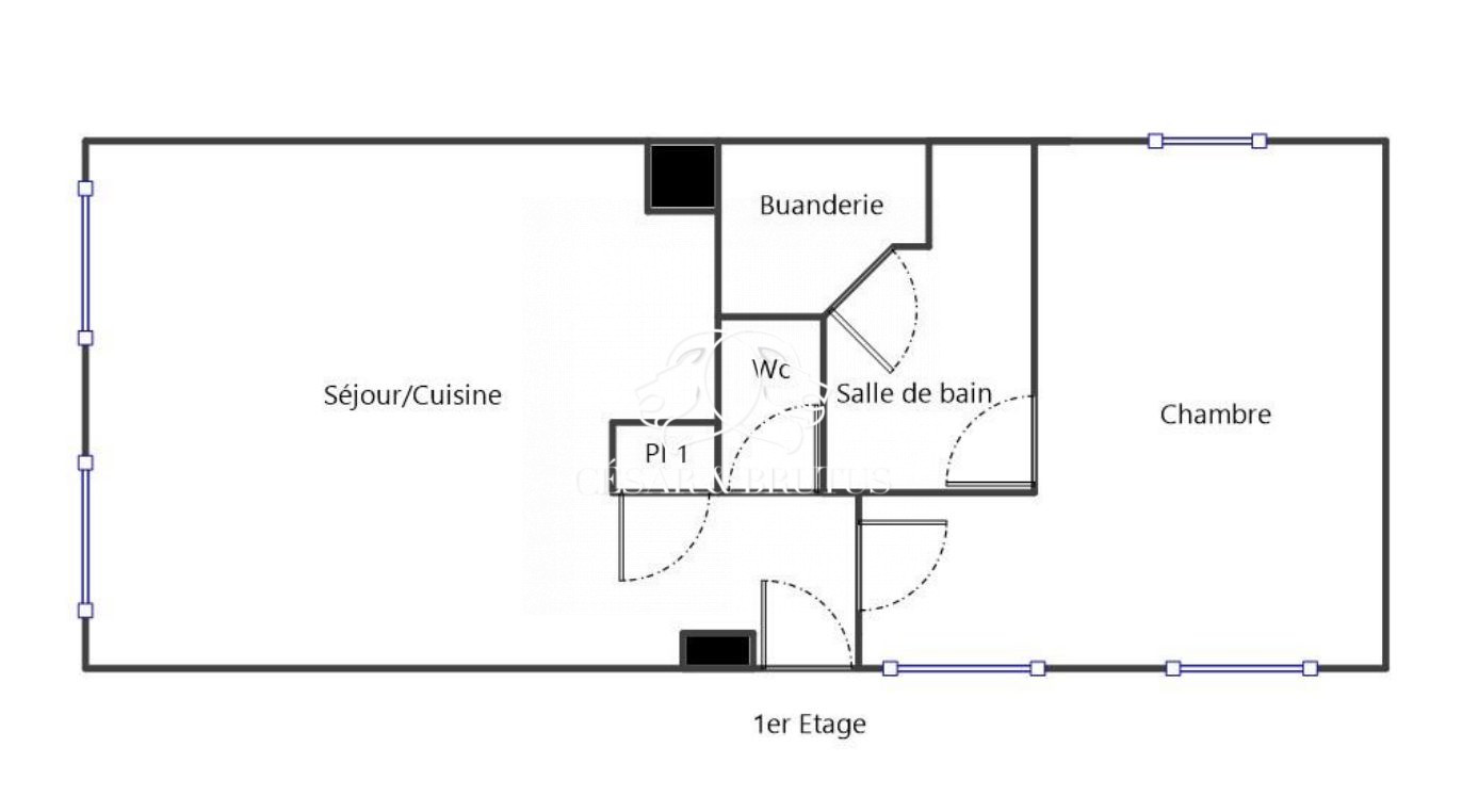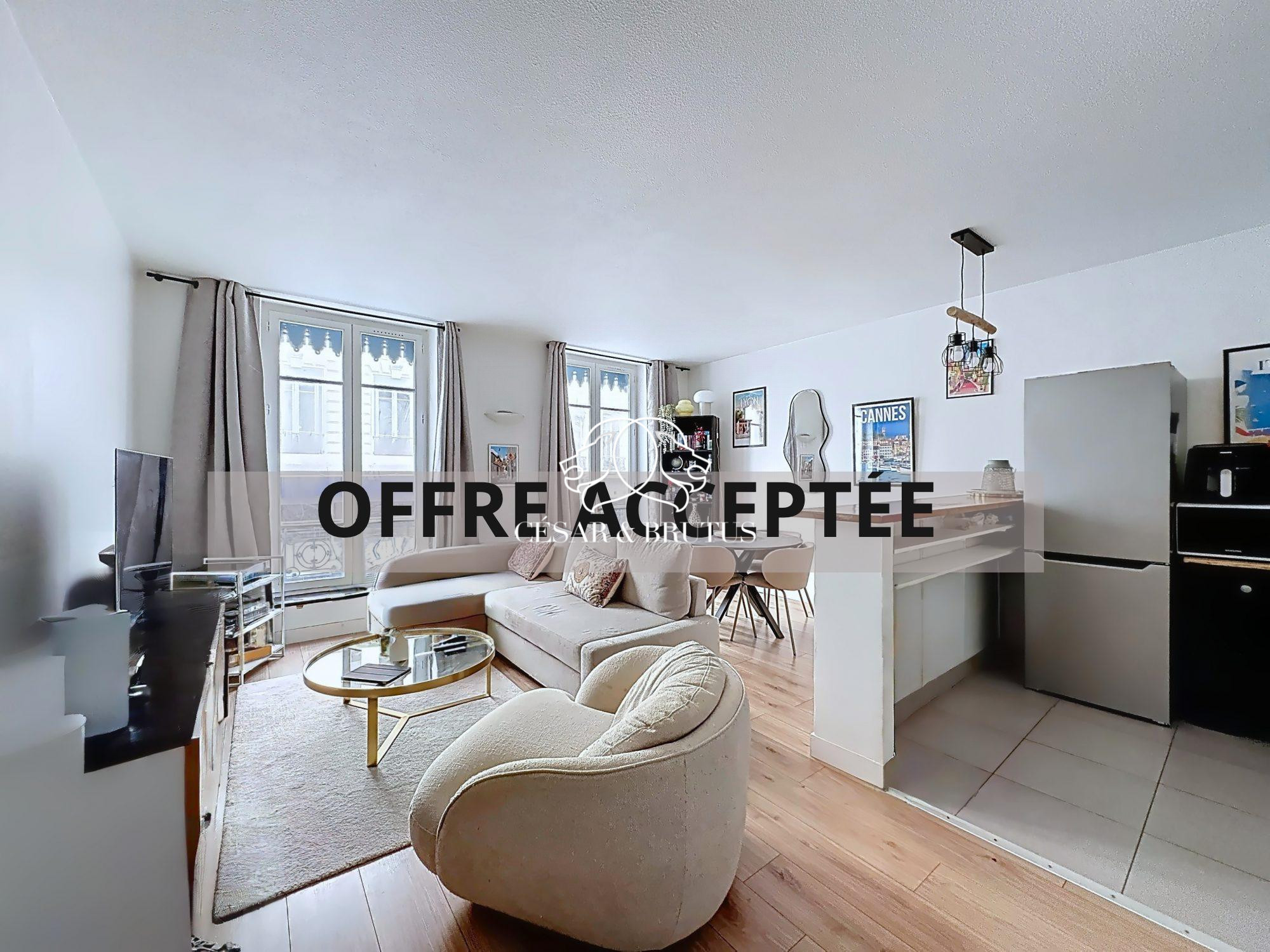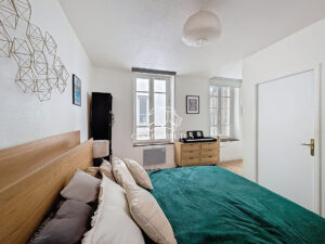 Cet appartement se situe au 1er étage d'un immeuble de quatre étages et se compose d'une entrée, une cuisine ouverte sur le séjour disposant de 2 très grandes fenêtres, 1 chambre de 15 m2, une salle de bains qui donne sur un dressing/buanderie.