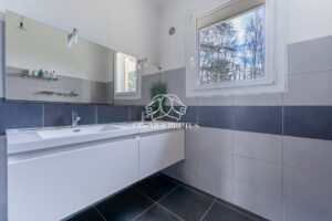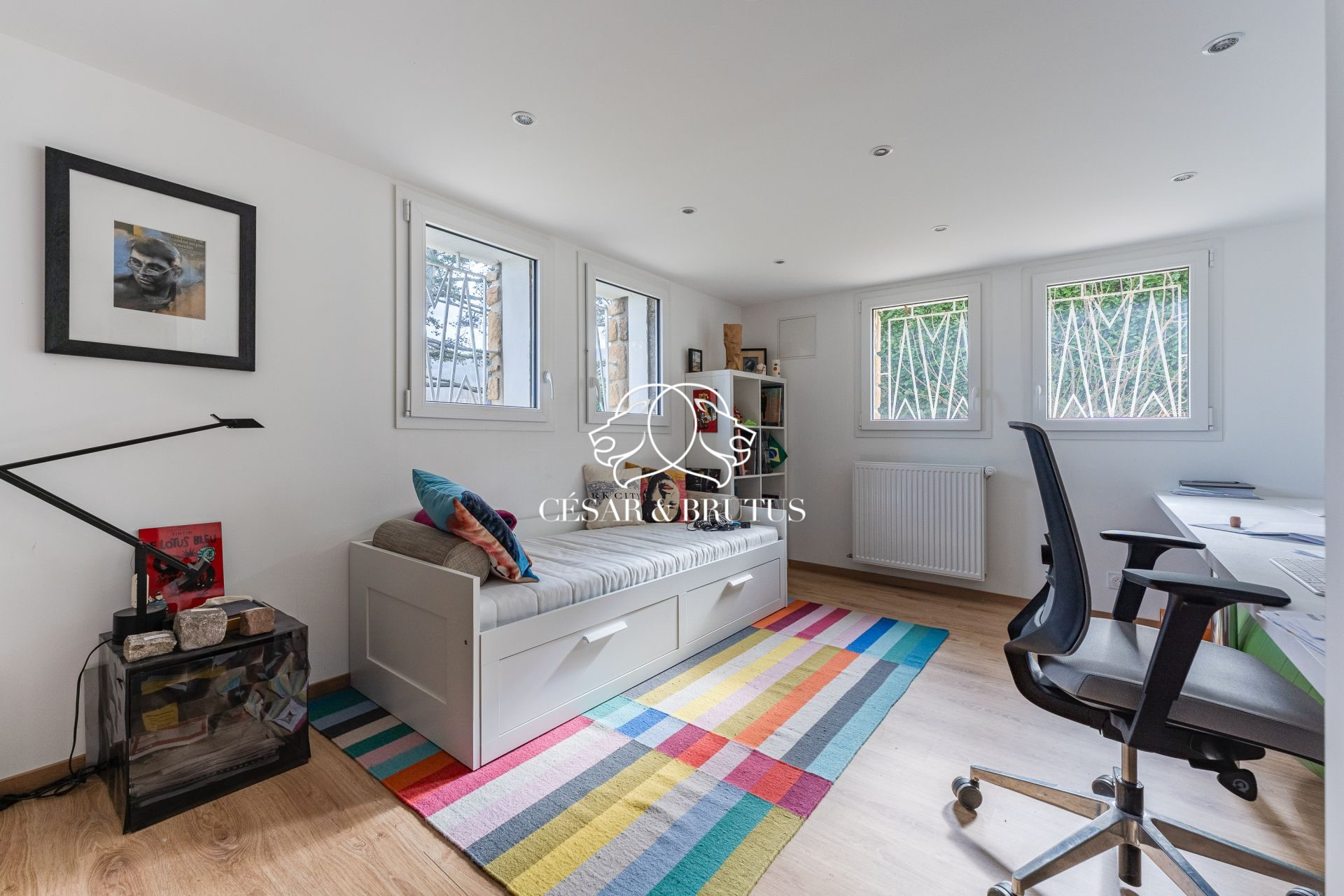 Au sous-sol accessible depuis l'entrée vous aimerez cet espace récemment aménagé. Il composé d'un bureau, d'une salle d'eau et d'une buanderie fonctionnelle. Une entrée indépendante est possible côté piscine.Côté confort vous avez des volets roulants électriques, un portail électrique avec visiophone.