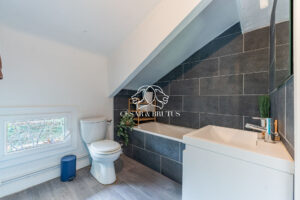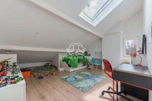 Le sous-sol récemment aménagé est composé d'un grand bureau, d'une buanderie fonctionnelle, d'une salle d'eau et d'un WC séparé.