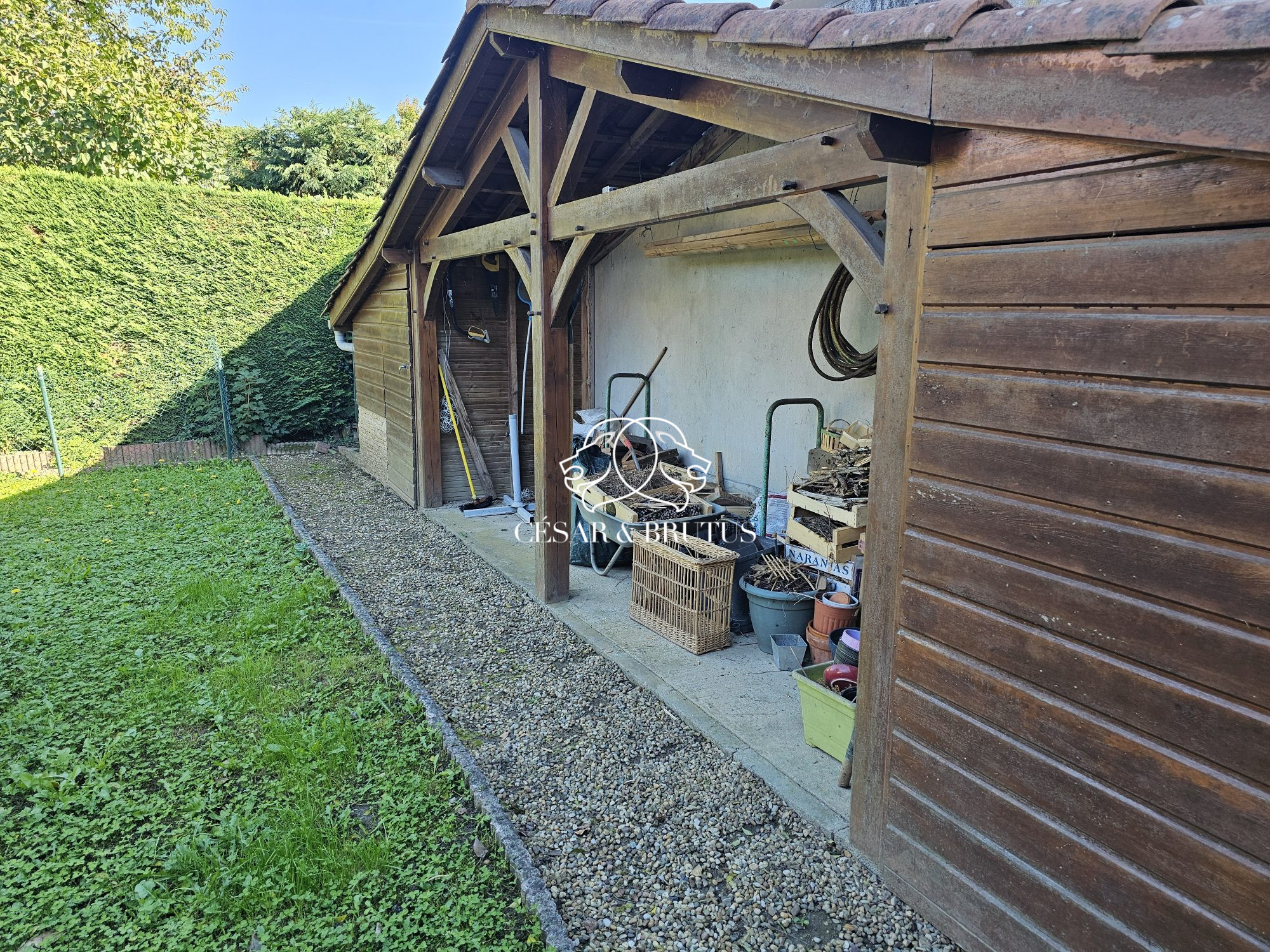Les extérieurs ne sont pas en reste avec une aire de stationnement pour 2 à 3 véhicules fermée par un portail électrique récent. Le terrain plat et piscinable comporte différentes terrasses dont la principale orientée plein Sud est accessible depuis la cuisine et le séjour.L’ensemble est parfaitement végétalisé et paysagé et dispose d’un espace couvert avec abris de jardin et rangements en fond de parcelle. Enfin, les hautes haies végétales vous garantiront une intimité préservée.