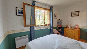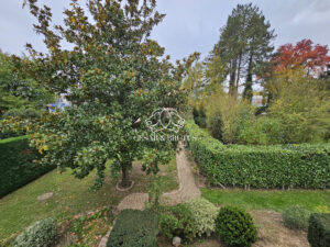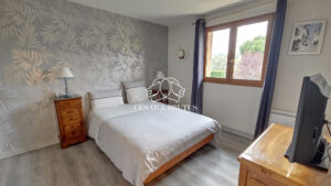 D’espaces de plein pied, composés d’une entrée, d’un séjour traversant Nord-Sud avec cheminée, d’une cuisine meublée et équipée aujourd’hui indépendante mais ouvrable en tout ou partie sur le séjour et d’un coin salon avec espace bureau, facilement transformable en suite parentale avec dressing et/ou salle d’eau (branchements et évacuation en attente). Des toilettes indépendantes et un accès direct au garage complètent ce premier niveau.