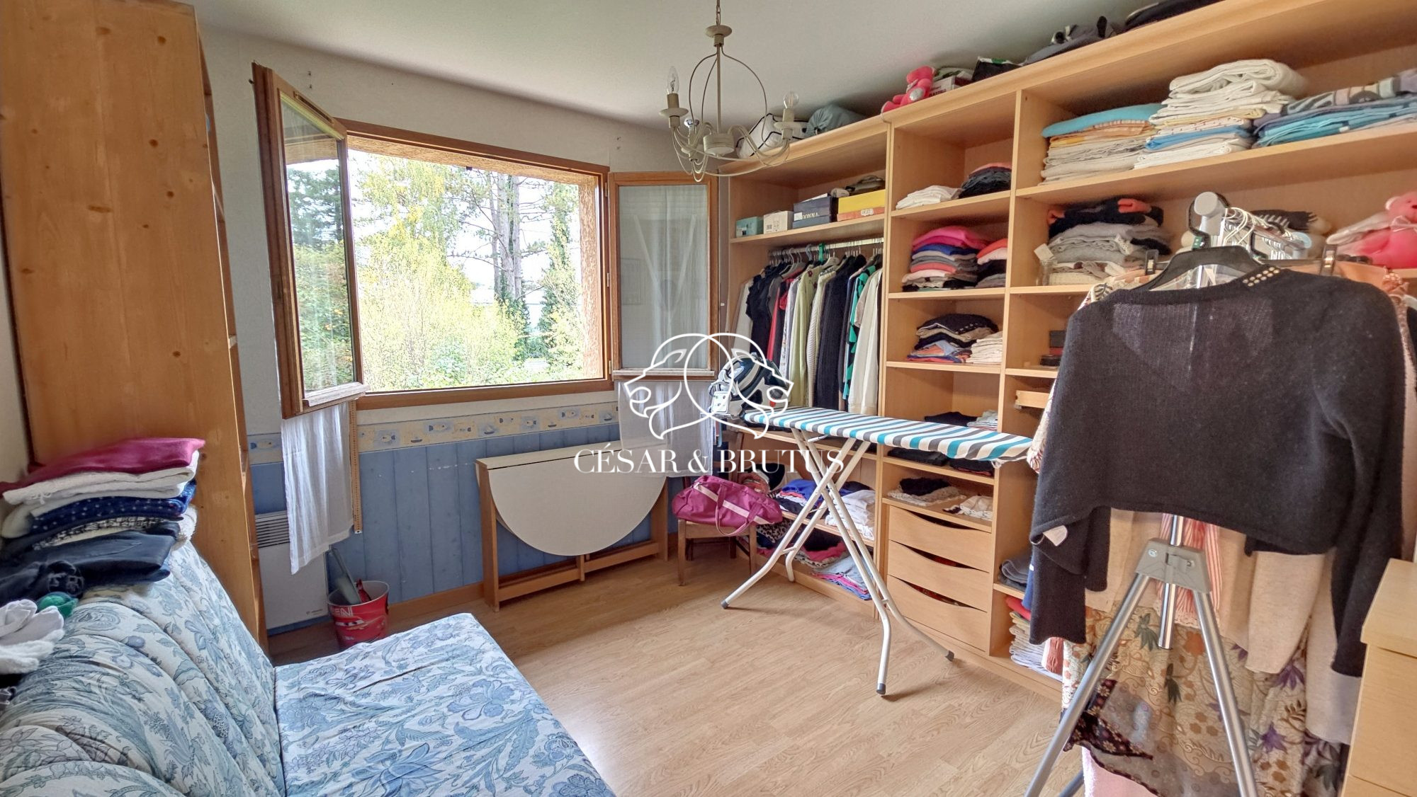 Le garage est équipé d’arrivées évacuations d’eau pour lave linge-sèche linge, et d’un espace grenier accessible par un escalier motorisé.