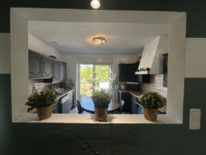 La cuisine indépendante, aménagée et équipée, fonctionnelle et agréable au quotidien, permet elle aussi un accès direct aux extérieurs, idéal pour les repas en terrasse dès les beaux jours.