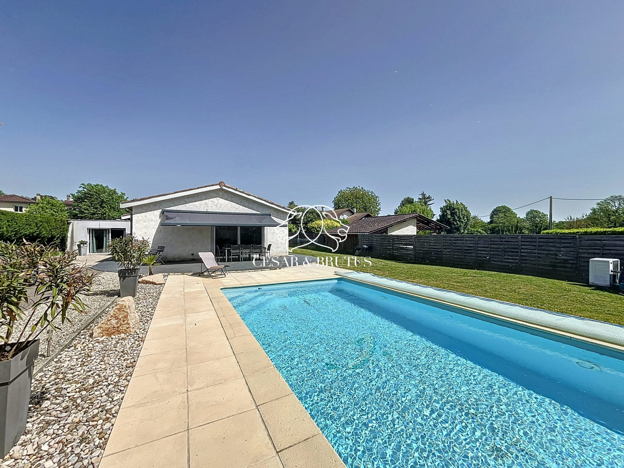 Dans un cadre de vie paisible et privilégié, l'agence CESAR ET BRUTUS est heureuse de vous présenter en exclusivité cette maison de plain-pied, sans vis-à-vis, d'une superficie de 165 m², édifiée sur un terrain de 1 390 m², dans la commune de VILLIEU-LOYES-MOLLON (01800).