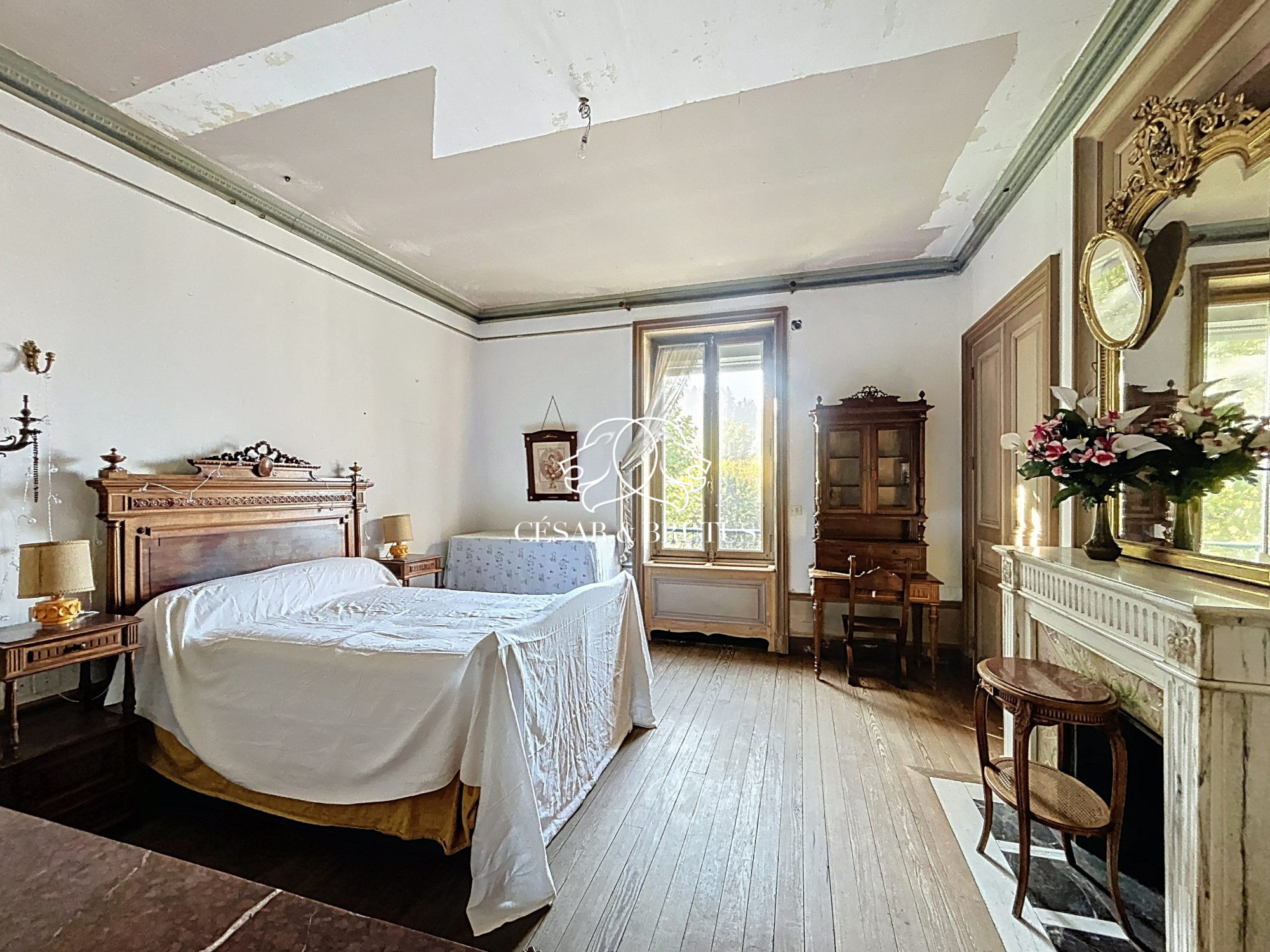 La maison développe 384 m² habitables et repose sur une belle parcelle de 1 643 m² de terrain. Vous retrouverez tout le cachet de l’ancien : cheminées en marbre, parquets d’origine, hauteurs sous plafond… un bien rare pour les amateurs d’authenticité.