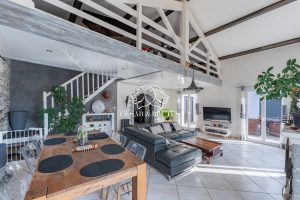 PROCHE DE LYON Votre agence César et Brutus est heureuse de vous présenter cette maison de 8 pièces de 210 m² habitable sur son terrain de 1 320 m² à TRAMOYES (01390). Vous découvrirez sa grande pièce de vie comprenant un séjour cathédrale avec sa cheminée, un coin salle à manger et une mezzanine. Le salon donne sur deux terrasses, l'une au sud et une à l'ouest contiguë à sa piscine. Une cuisine aménagée et équipée est insérée entre une grande buanderie et un hall qui dessert la salle à manger, l'espace nuit de l'étage et un WC. A u R + 1 vous trouverez 3 chambres, une salle de bain et un WC. En complément sur une aile de la maison, accessible depuis l'entrée principale, vous apprécierez cette extension récente aux normes RT 2012 composée de trois chambres spacieuses dont une avec Dressing, une salle de bains et un WC séparé. Côté extérieur sur un terrain plat profitez d'une grande piscine de 10 X 5 . Un chalet en bois de 8 M2 sert d'atelier et d'espace de rangements. Un garage de 18 M2 complète le bien. L'école primaire, les structures d'accueil pour les enfants en bas âge sont accessibles à moins de 05 minutes en voiture. Côté transports à 100 mètres se trouve l'arrêt de bus du collège et du lycée compétents. A moins de 10 minutes en voiture se trouve la gare SNCF qui permet de rejoindre Lyon en train. Les autoroutes A46 et A42 et la nationale N346 sont accessibles à moins de 9 km. Côté commodités vous trouverez des commerces au centre du village, un bureau de poste. Un marché de produits locaux se tient une fois par mois sur la place du village. Des équipements sportifs et culturels animent le village ( cinéma, salle des fêtes, théâtre, gymnase, terrains de tennis, parc jeux pour enfants, terrain multisports ). Les informations sur les risques auxquels ce bien est exposé sont disponibles sur le site Géorisques : www.georisques.gouv.fr. Pour plus d’informations et pour découvrir cette maison, contactez moi dès maintenant pour organiser une visite. Ne manquez pas cette opportunité ! Jean-Pierre François 06/19/91/61/39 jp.francois@cesaretbrutus.com RSAC : 932 491 798 référence : JF-6810