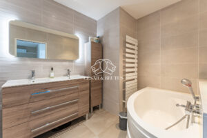 Côté annexes, la maison dispose d’un garage avec espace buanderie, ainsi que d’une place de stationnement extérieure. Le tout est sécurisé par un portail.