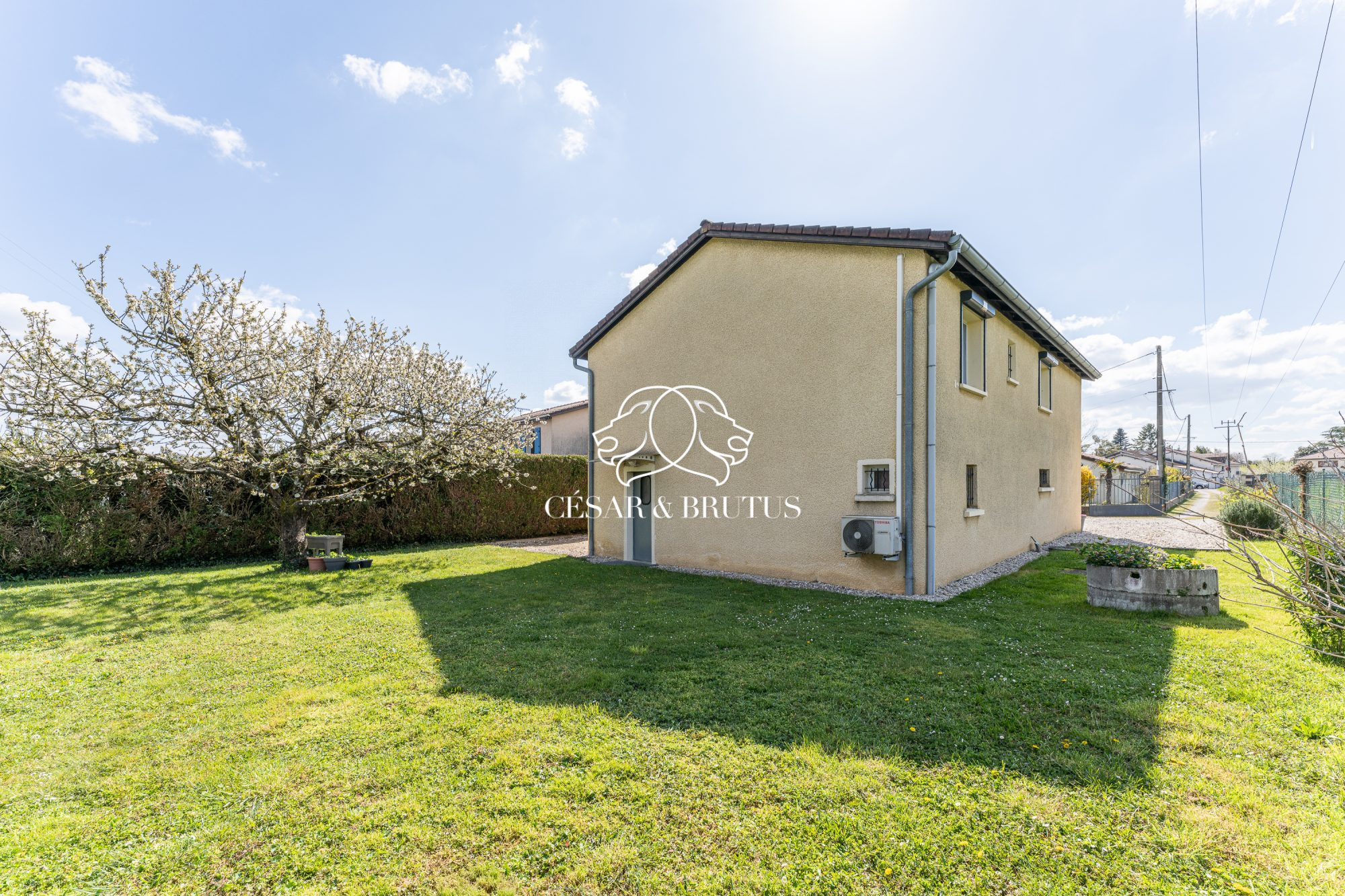 Vanessa ETIENNE et César et Brutus vous proposent à la vente une maison sur deux niveaux avec un très beau jardin arboré, situé en fond d'un chemin privé, au calme absolu.
