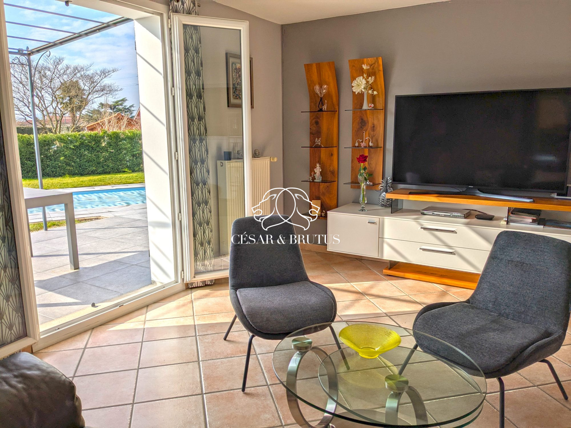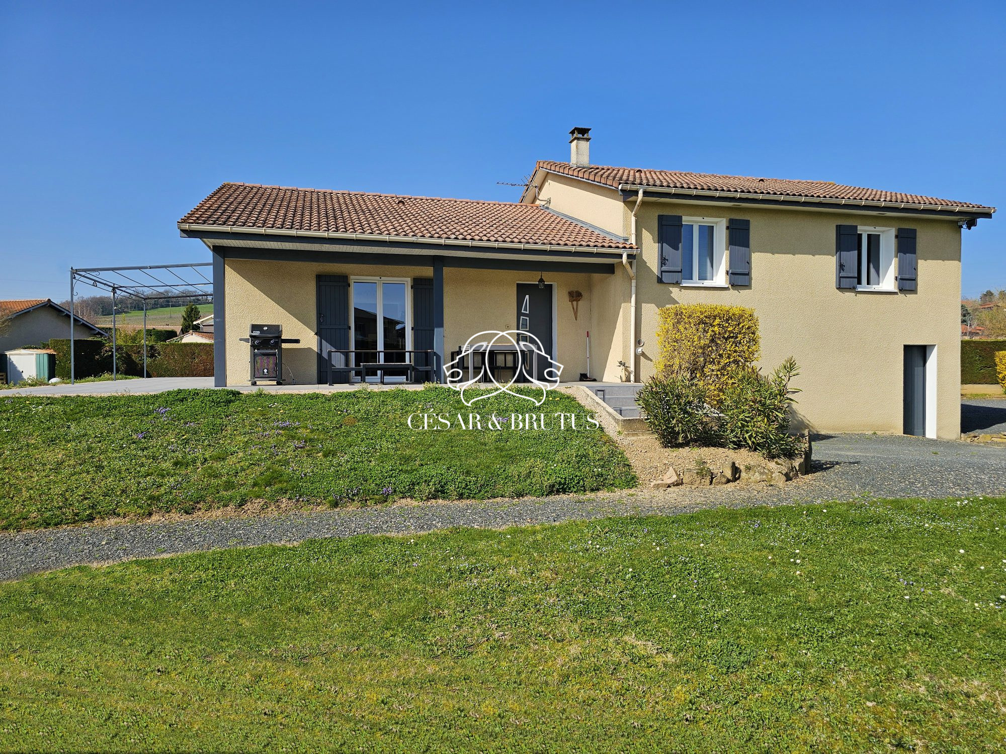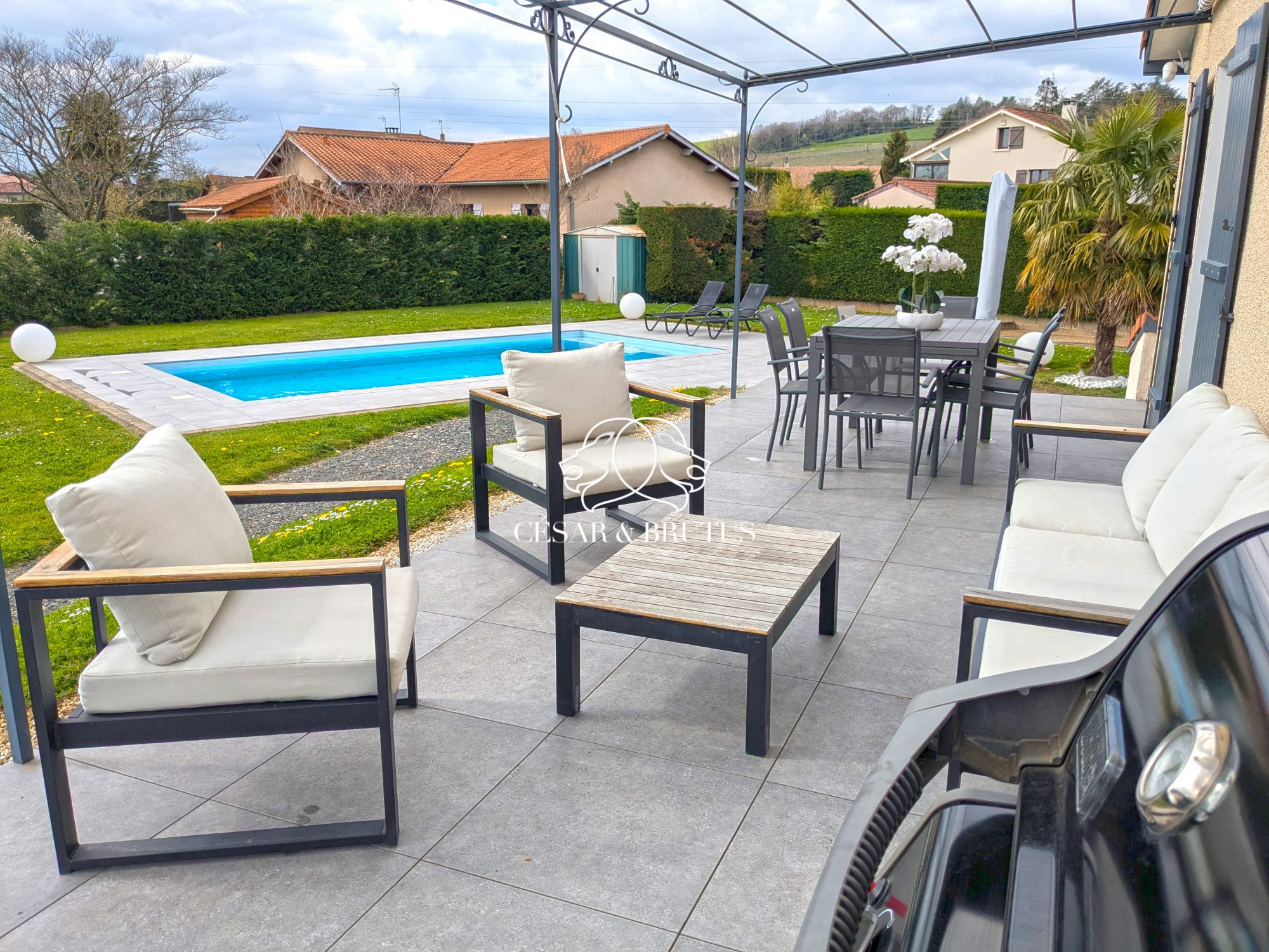 .Chazay d’Azergues, au sein d’un quartier résidentiel et prisé de Chazay d’Azergues, villa familiale de 162 m² sur une parcelle plate entièrement close et arborée de 1640 m² avec piscine.