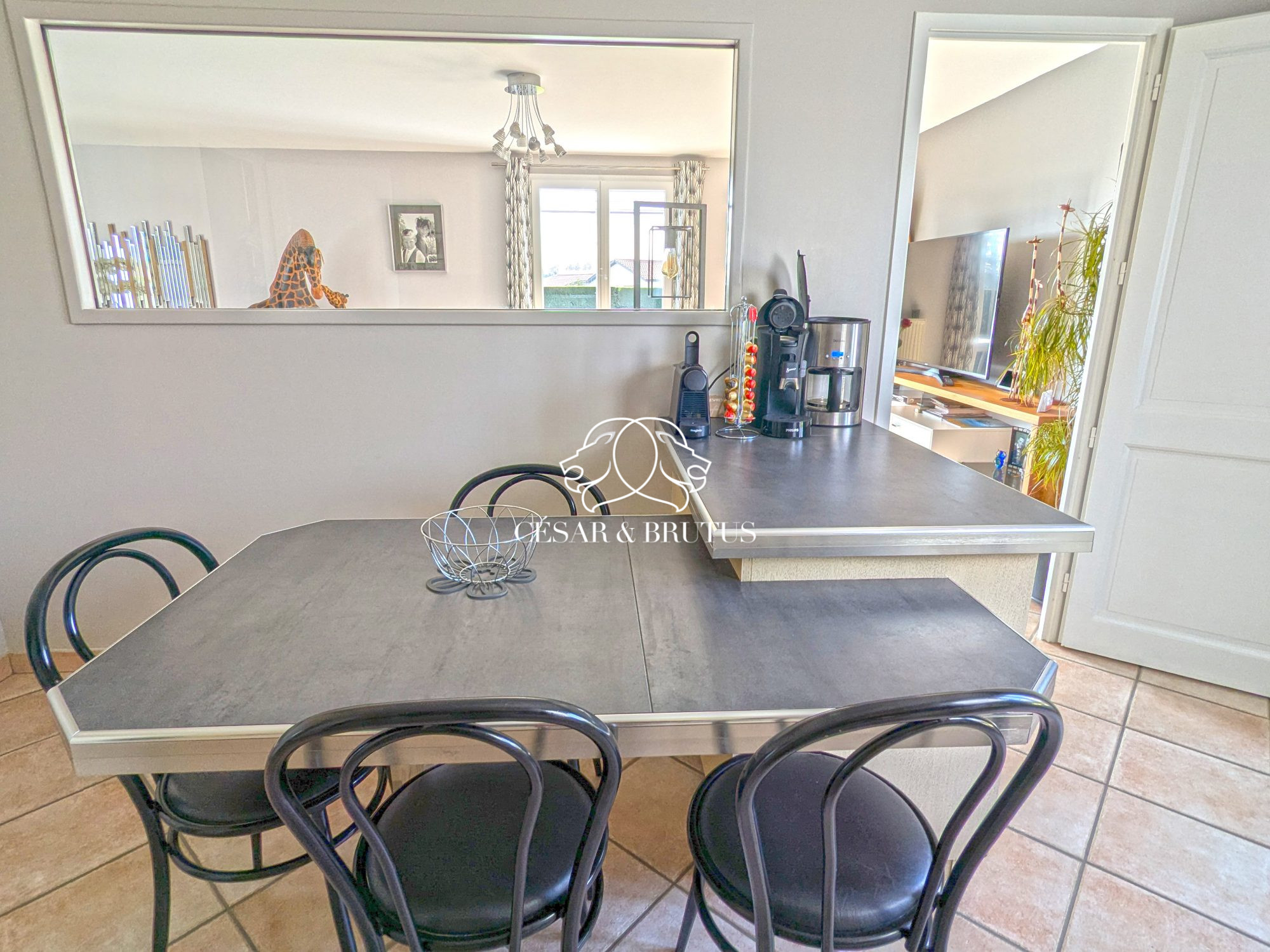 - D’un espace de vie jour de près de 60 m² composé d’une entrée avec grand placard mural, d’un salon-séjour en double orientation Est-Sud face à la piscine, et d’une cuisine équipée avec espace repas de près de 14 m². Cette dernière aujourd’hui indépendante est ouvrable en tout ou partie sur le salon-séjour.