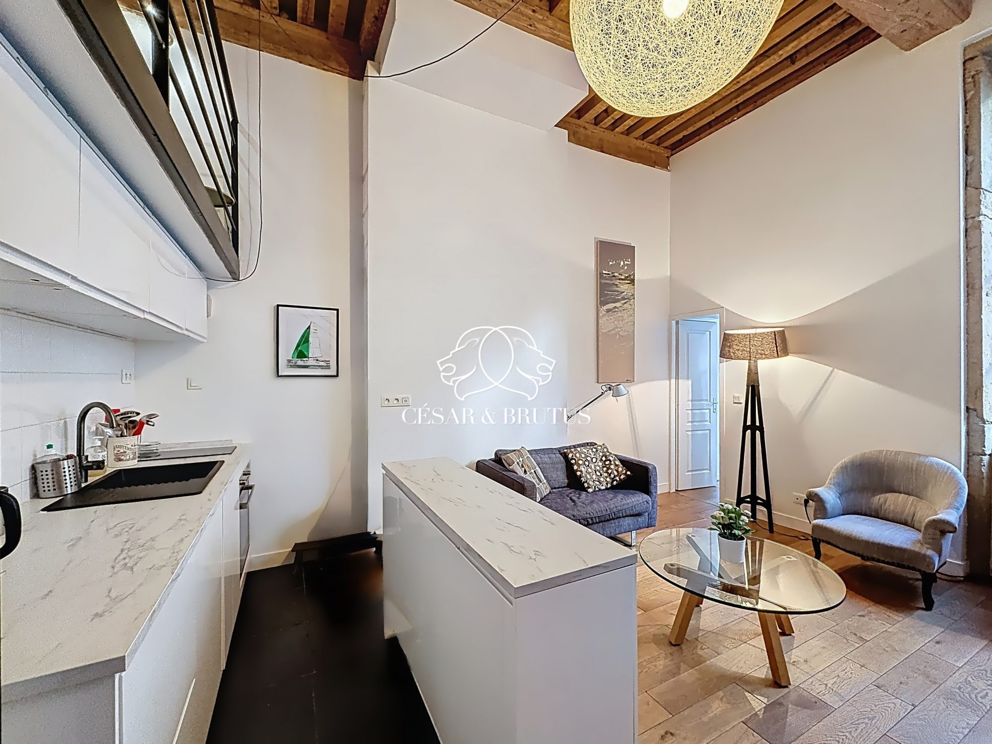 Découvrez ce T1bis en excellent état situé au 1er étage, un véritable havre de paix en plein cœur du 1er Arrondissement (place Tolozan). Ce petit cocon rénové en 2021 allie charme de l'ancien et modernité.Il se compose d'une entrée, un dégagement, une cuisine (aménagée et équipée) ouverte sur le séjour, une pièce séparée pouvant servir de chambre d'appoint ou d'un confortable bureau , une chambre en mezzanine (179,5cm de hauteur/plafond), une salle d'eau/WC