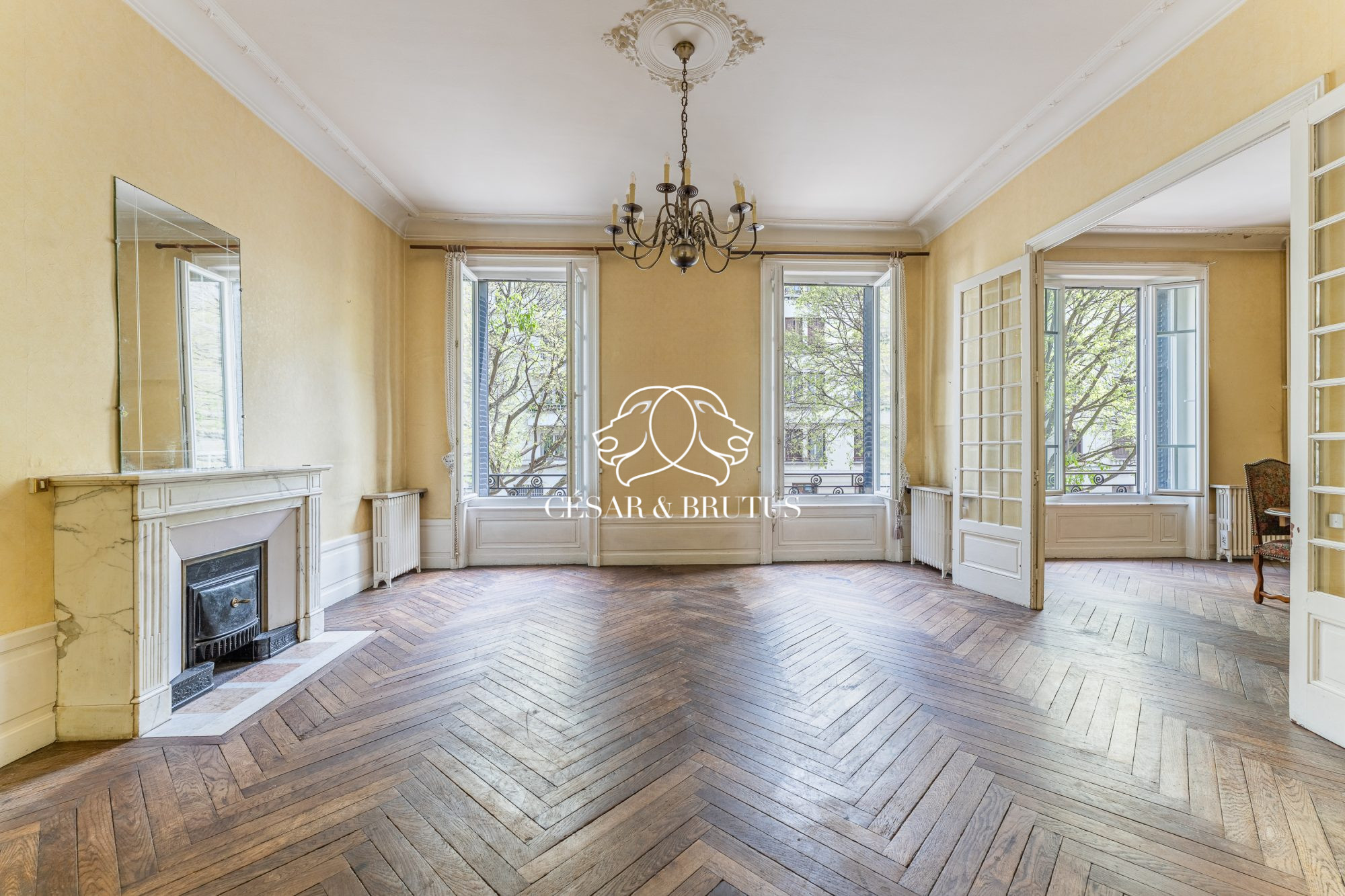 Dans un bel immeuble bourgeois, seul sur son palier, cet appartement traversant de 175 m² bénéficie d'une belle luminosité toute la journée.