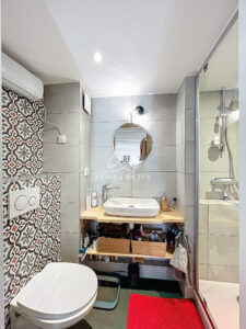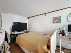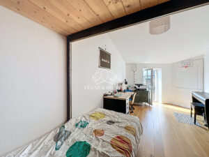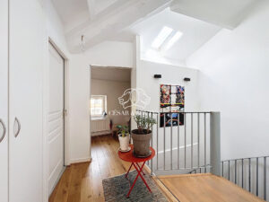 Le Premier étage : Un espace nuit composé d’une suite parentale avec sa salle d’eau et son WC refaits à neuf, ainsi qu’une seconde grande chambre équipée d’un espace bureau. Rangements généreux sur le pallier.