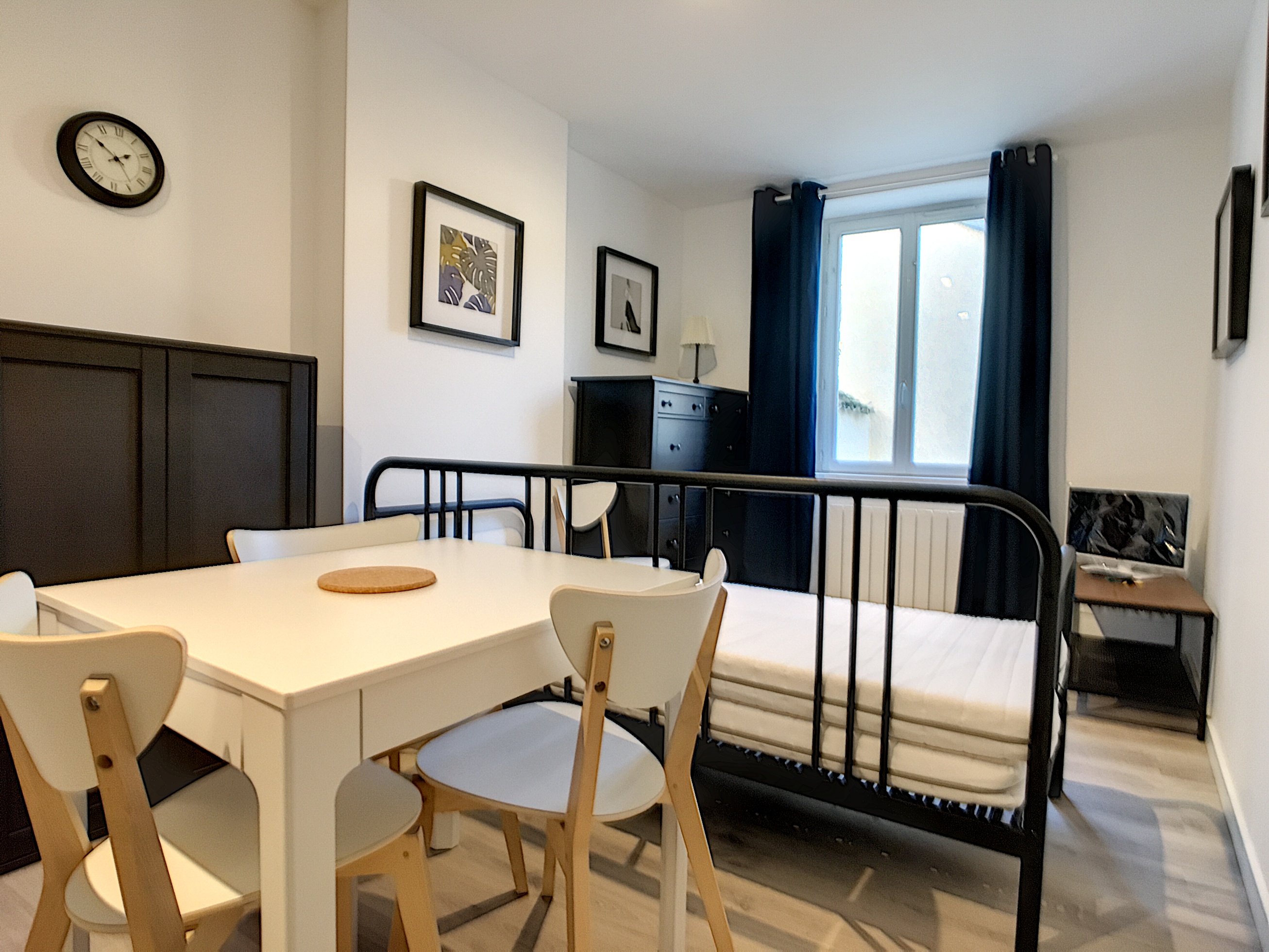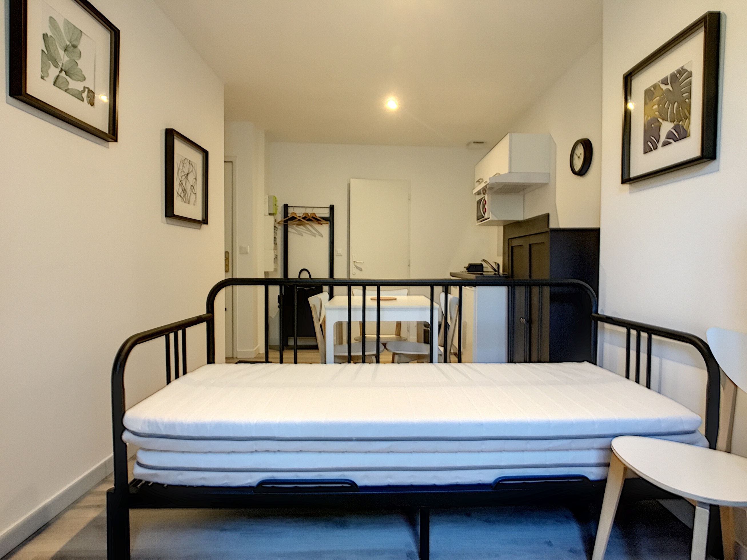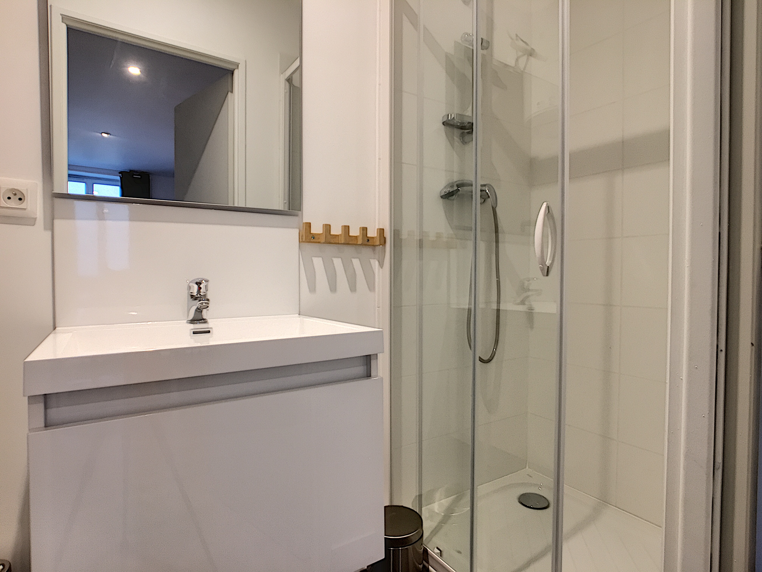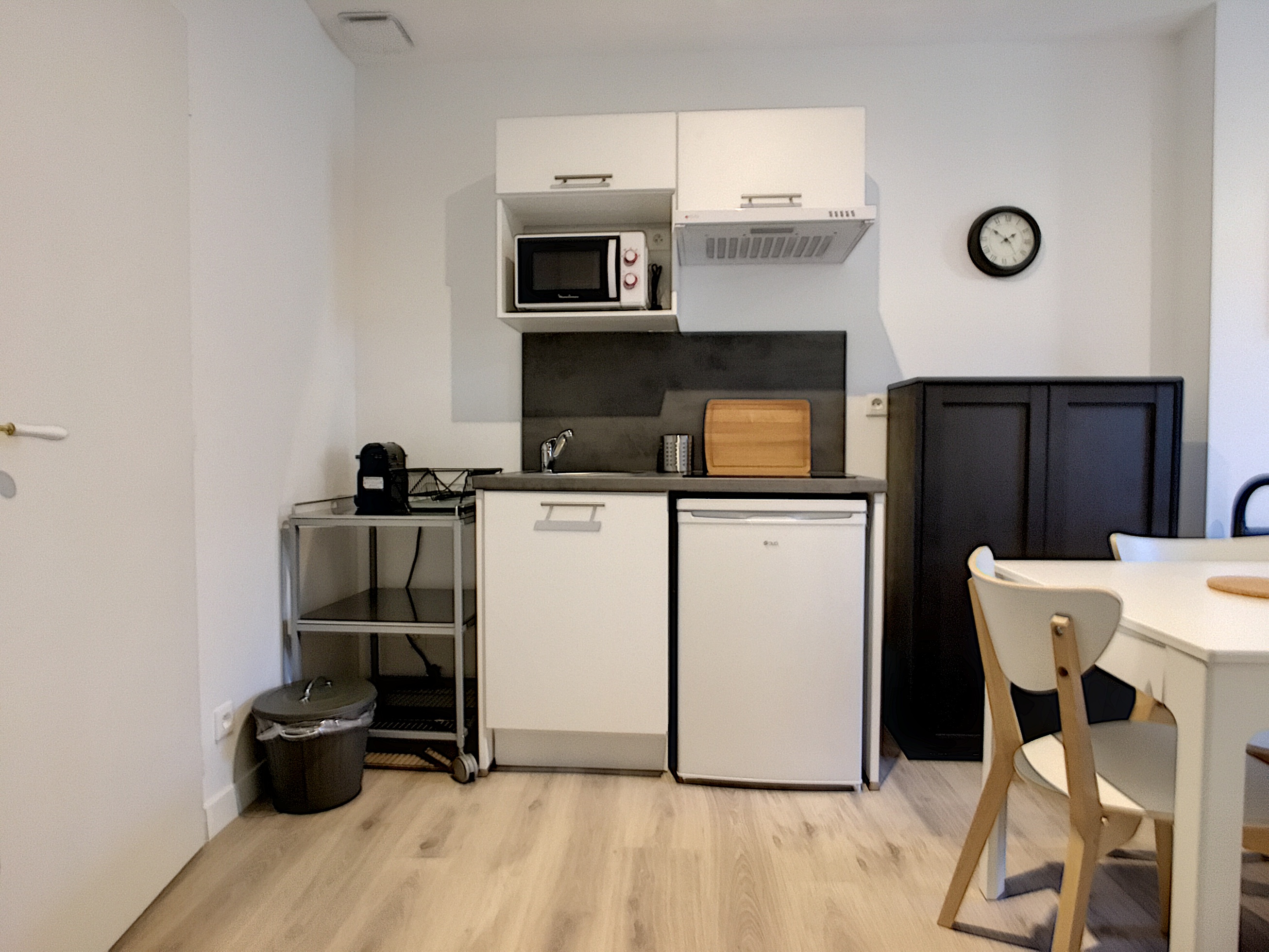 Il se compose d’une entrée, d’une pièce de vie lumineuse avec cuisine équipée (plaques de cuisson, réfrigérateur, hotte, micro-ondes) ainsi que d’une salle d’eau avec WC.