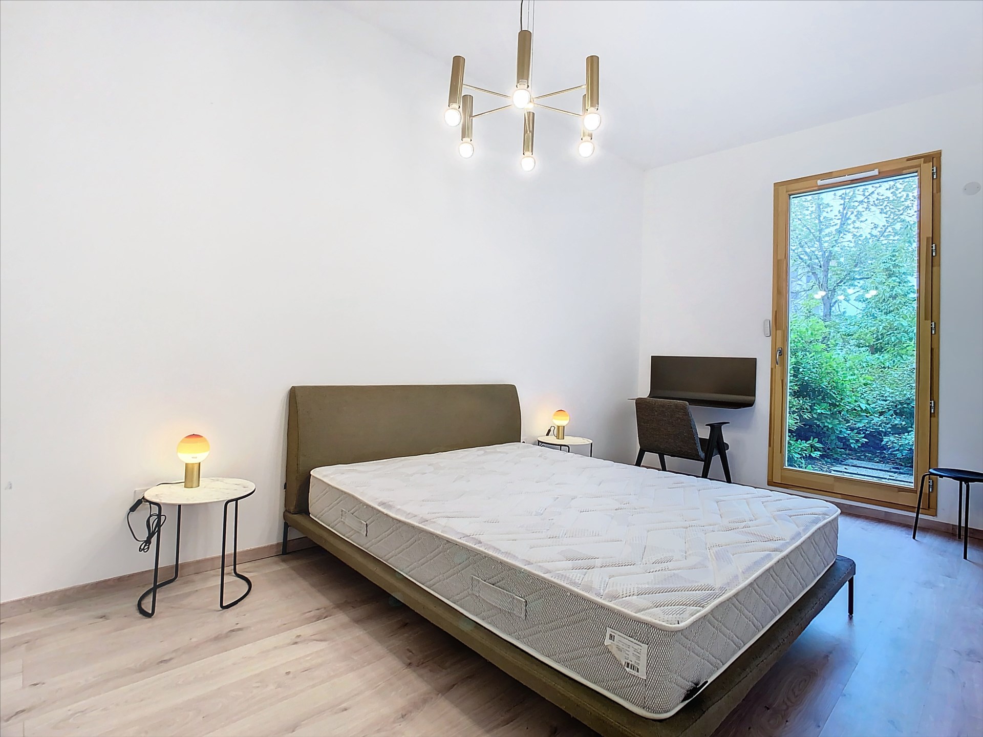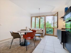 L'appartement se compose d'une pièce de vie avec une cuisine équipée (four, plaques de cuisson, hotte, mini réfrigérateur), d'une chambre spacieuse avec rangements ainsi que d'une salle d'eau et d'un WC.