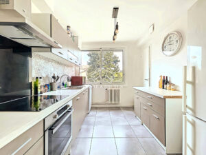 Au premier étage d’une copropriété au calme et arborée, vous trouverez une jolie pièce de vie lumineuse ouverte sur la verdure et sans vis-à-vis. Une agréable loggia vous accueillera pour vos moments de détente et de restauration. La cuisine moderne, équipée et fonctionnelle, est agrémentée d’une buanderie.