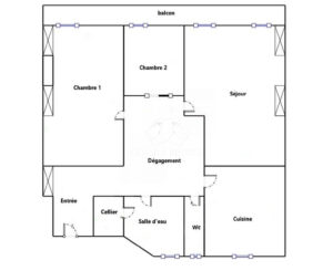 Il se compose d'une entrée, un dégagement qui distribue le salon/séjour donnant accès au balcon, une cuisine indépendante, 2 chambres (accès balcon), une salle d'eau , et un W.C indépendant.