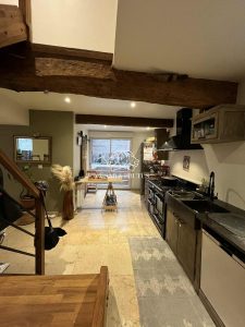 Pierres naturelles, poutres apparentes, volumes équilibrés… chaque détail a été soigné. Ici, on se sent bien.