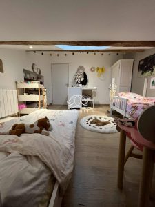 À l’étage, trois belles chambres et une salle de bains composent l’espace nuit, baigné de lumière et de douceur.